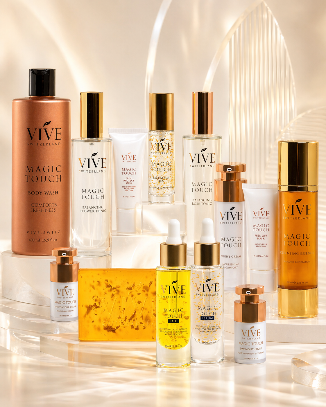- Das vollständigste VIVE SWITZERLAND System in einem Ritual. Verbindet Morgen, Abend, Weekly Care und Daily Essentials. Schafft eine klare, wiederholbare Struktur statt zufälliger Einzelprodukte. Ideal für Kund:innen, die ein vollständiges Premium System suchen