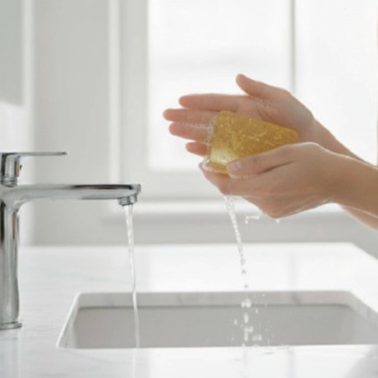 Reibe die Seife zwischen den Händen, bis ein feiner, cremiger Schaum entsteht.