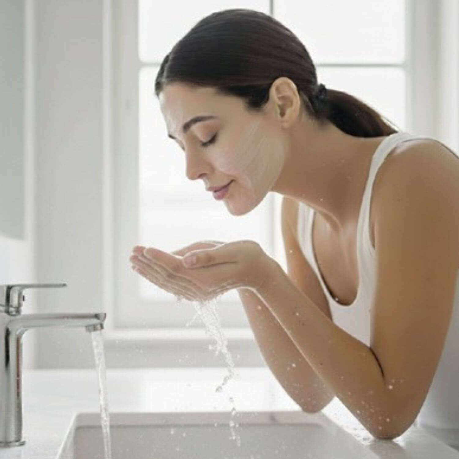 Befeuchte deine Haut mit lauwarmem Wasser.